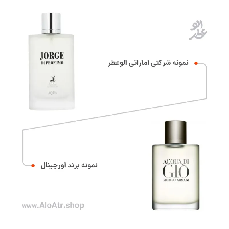 ادکلن Alhambra Jorge di Profumo نمونه شرکتی و محصول مشابه ادکلن Giorgio Armani Acqua di Gio به حساب میآید. این ادکلن توسط برند اماراتی طراحی و تولید شده و کیفیت مشابهی با ادکلن اصل دارد. ناگفته نماند که پخش بو و میزان ماندگاری این محصول با در نظر گرفتن قیمت اقتصادی، منحصربهفرد خواهد بود.
