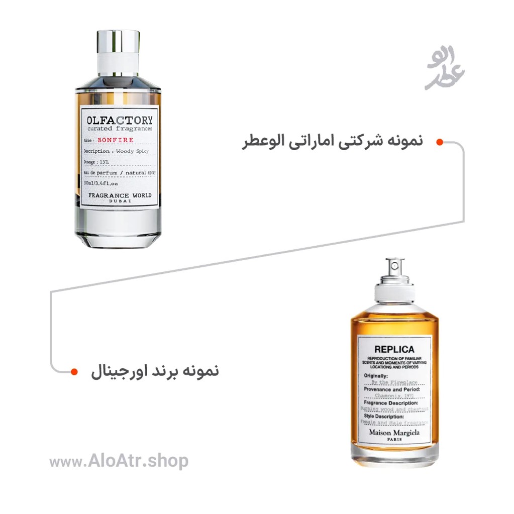 عطر شرکتی اماراتی اولفکتوری بونفایر فراگرنس ورد (Olfactory Bonfire Fragrance World) نسخه مشابه عطر محبوب رپلیکا بای د فایر پلیس (Replica By the Fireplace) است و رایحهای بسیار مشابه دارد. ماندگاری و پخش بو این عطر مناسب است و با توجه به قیمت اقتصادی، انتخابی هوشمندانه و ارزشمند برای خرید است.