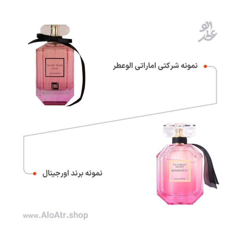 عطر شرکتی اماراتی سکرت بامب الکسیر (SECRET BOMB Elixir) نسخه مشابه عطر محبوب سکرت بامب شل ادوپرفیوم (Bombshell Eau de parfum) است و رایحهای بسیار مشابه دارد. ماندگاری و پخش بو این عطر مناسب است و با توجه به قیمت اقتصادی، انتخابی هوشمندانه و ارزشمند برای خرید است.