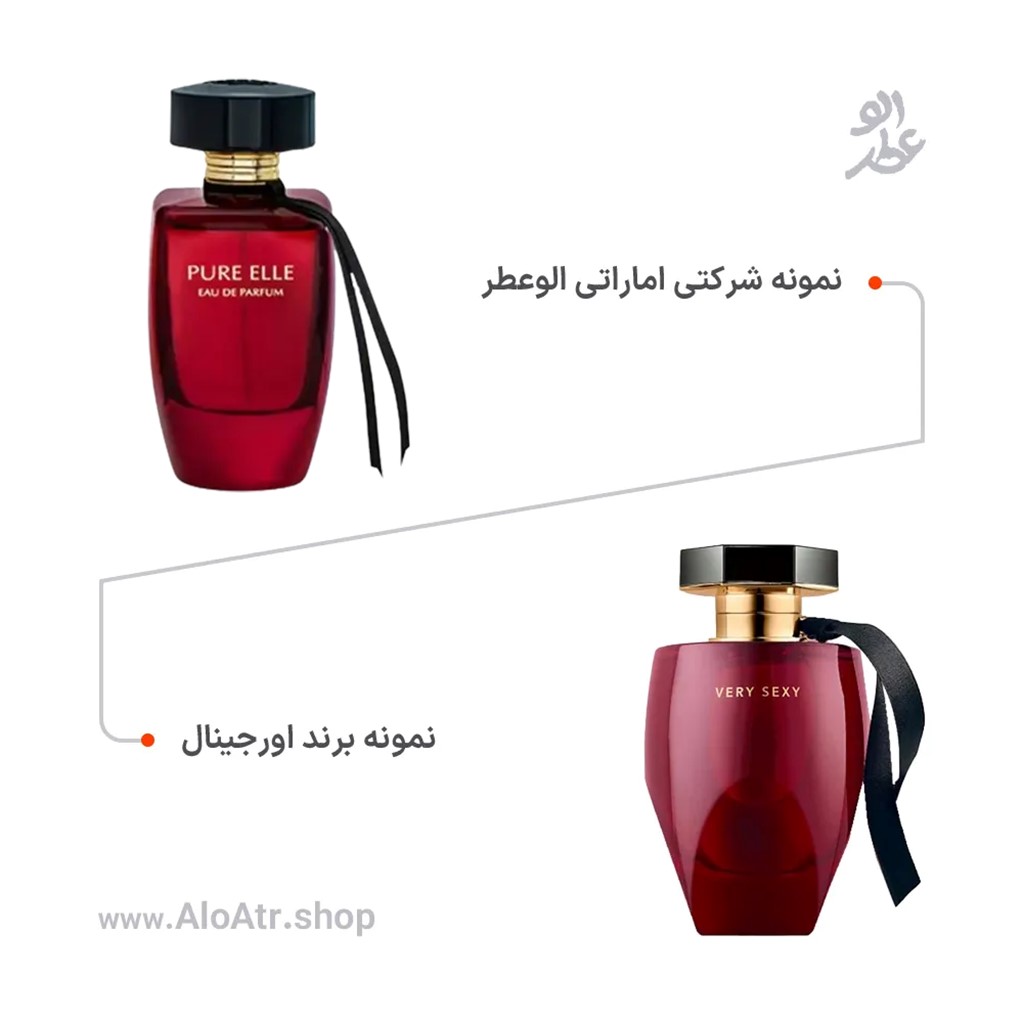 عطر شرکتی اماراتی فراگرنس ورد پیور اله (Fragrance World Victoria's Secret Very Sexy) نسخه مشابه عطر محبوب ویکتوریا سکرت وری سکسی (Victoria Secret Very Sexy) است و رایحهای بسیار مشابه دارد. ماندگاری و پخش بو این عطر مناسب است و با توجه به قیمت اقتصادی، انتخابی هوشمندانه و ارزشمند برای خرید است.