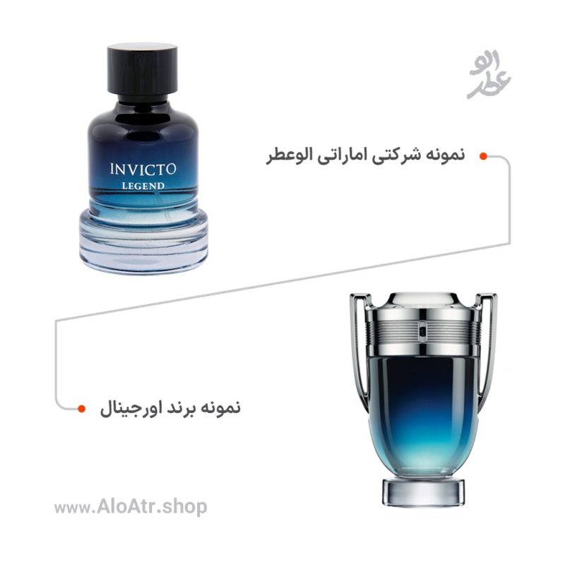 ادکلن Fragrance World Invicto Legend نمونه شرکتی اماراتی Paco Rabanne Invictus Legend با کیفیت بسیار مشابه است. در مقایسه این دو ادکلن میتوان گفت که هردو محصول رایحه، پخش بود و ماندگاری بسیار مشابه دارند. اما اینویکتو لجند فراگرنس ورد توانسته با ارائه کیفیت قابلقبول و قیمت مناسب، به انتخابی مناسب برای آقایان تبدیل شود. این ادکلن اماراتی برای کسانی که به دنبال عطری شیک با ماندگاری بالا هستند، گزینهای مناسب است.